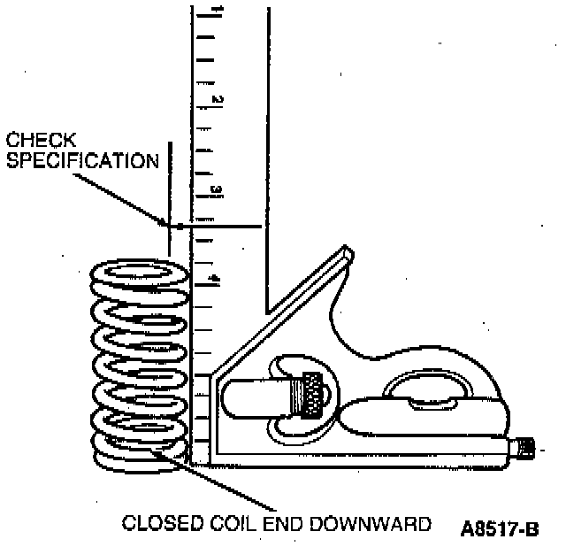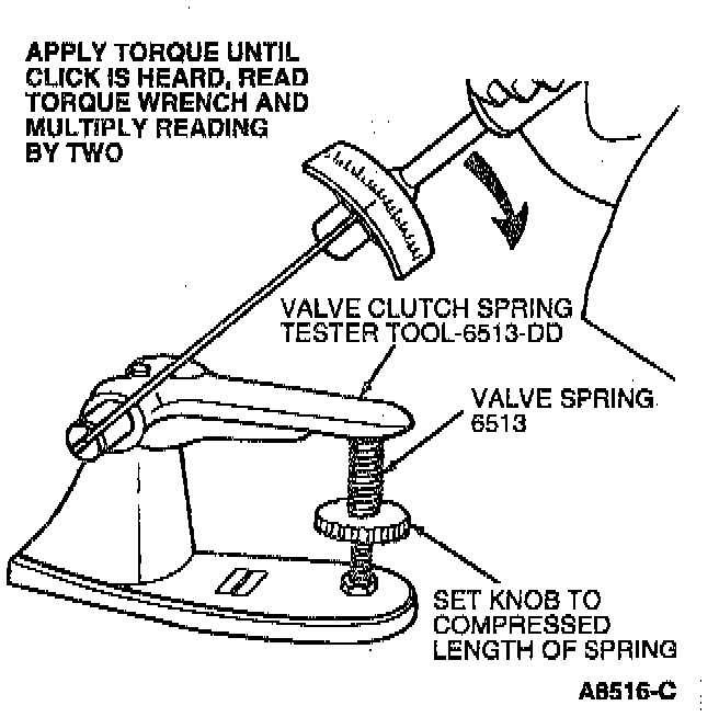^ Check valve springs for proper pressure at the specified spring lengths using Valve/Clutch Spring Tester TOOL-6513-DD or equivalent. Replace any valve spring not within specification.