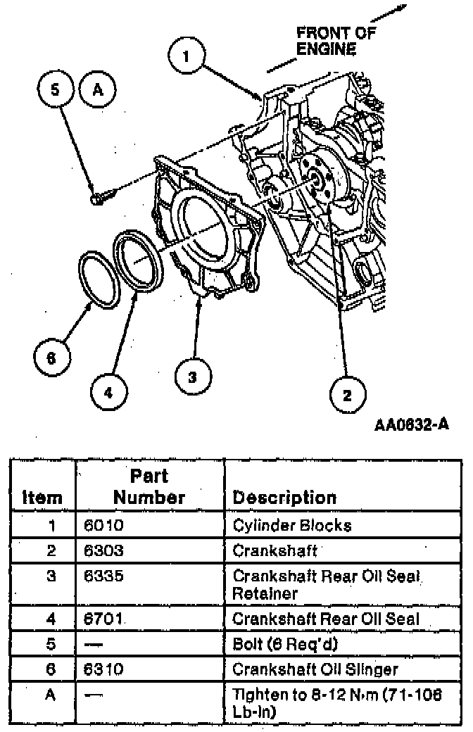 36. Remove crankshaft oil slinger (6310) and crankshaft rear oil seal (6701) using Rear Crankshaft Slinger Remover T95P-6701-AH, Rear Crankshaft Seal Remover T95P-6701-EM and Slide Hammer TOOT-100-A.