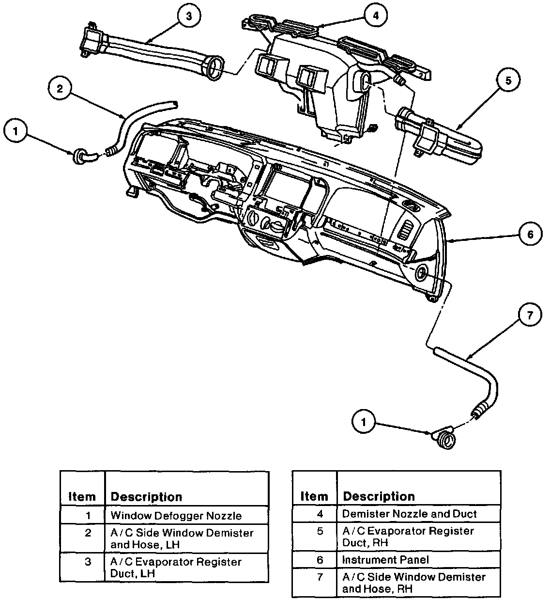 The defroster, demister and register ducts distribute climate-controlled air from the