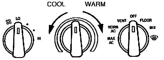 ^ Temperature control of the manual A/C-heater system is determined by the position of the temperature control knob (between COOL and WARM).