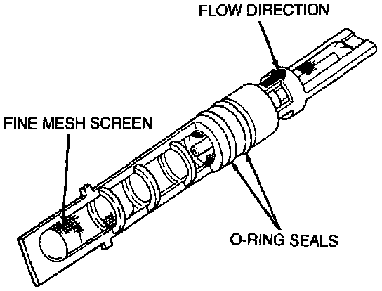 ^ The inlet filter screen acts as a strainer for the liquid refrigerant flowing through the A/C evaporator core orifice.