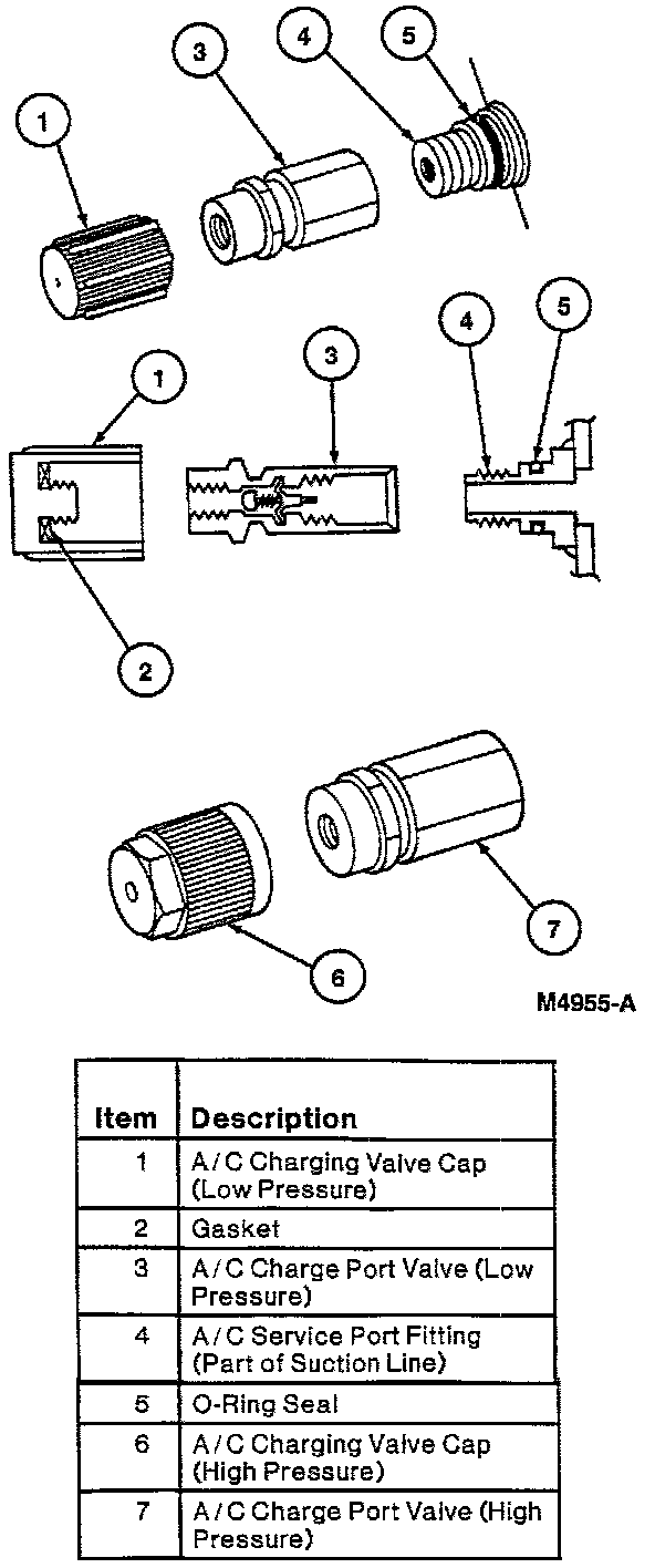 ^ Always install the A/C charging valve caps on the service access gauge port valves after servicing the refrigerant system.