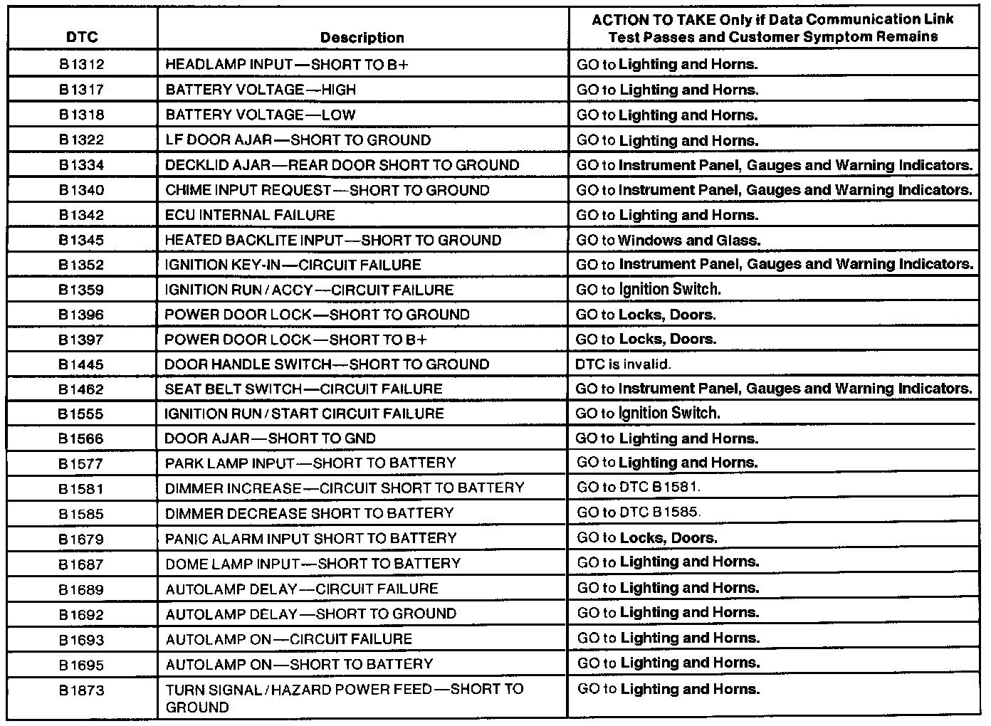Lighting Control Module (LCM) DTC Index