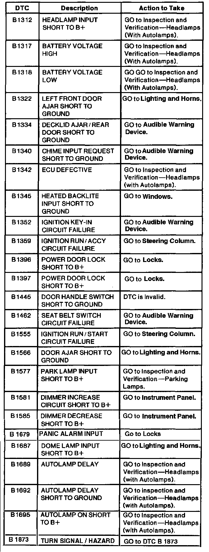 Lighting Control Module Diagnostic Trouble Code Index