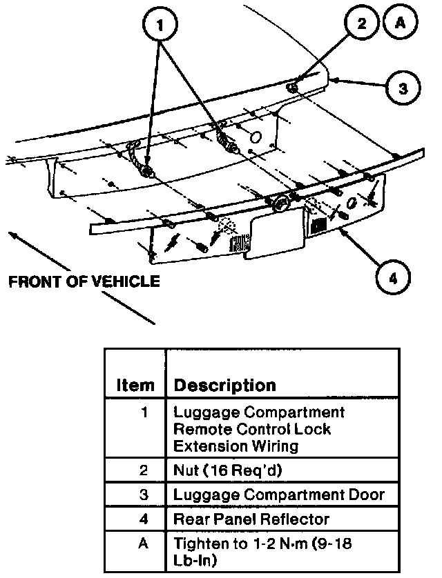 3. Remove 16 nuts retaining rear panel reflector to luggage compartment door.