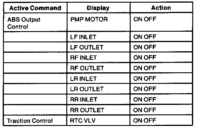 Anti-Lock Brake (ABS) Module Active Command Index
