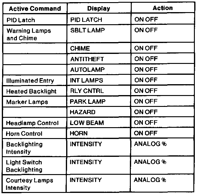 Lighting Control Module (LCM) Active Command Index