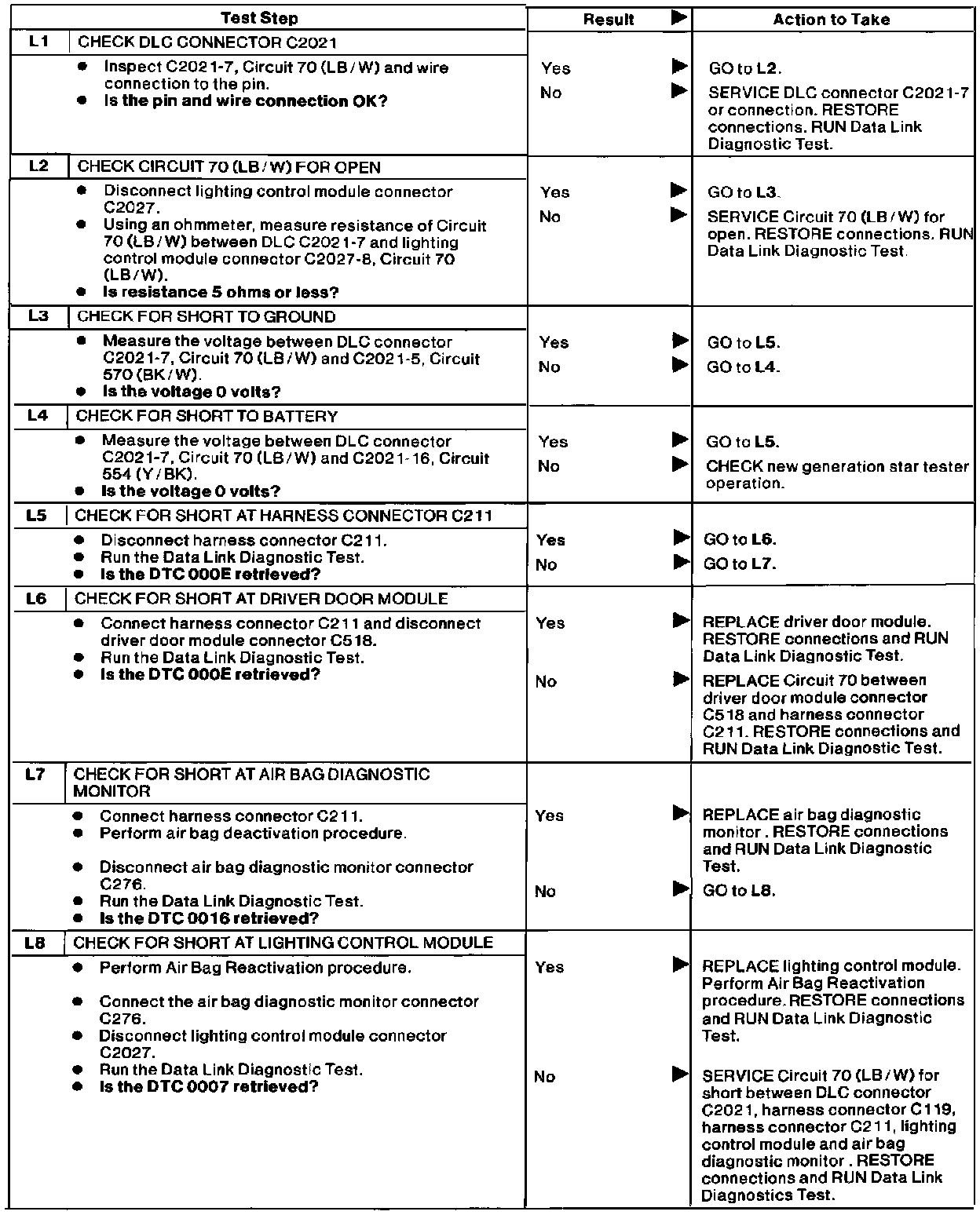 L: Air Bag/Driven Door/Lighting Module No Resp. (Non ABS DSM)