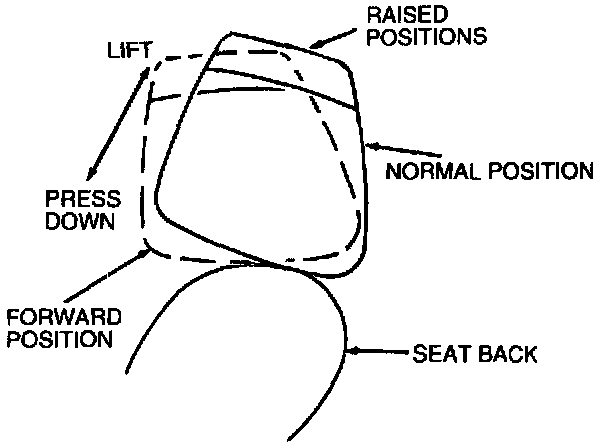 - The front seat back head restraint is adjustable from its normal position to a raised position of approximately 25 mm (1 inch).