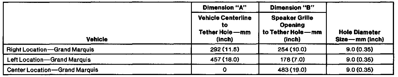 - The center hole is located at the approximate center line of the vehicle, 457 mm (18 inches) rearward from center of the package tray panel and approximately 483 mm (19 inches) from right speaker grille opening.