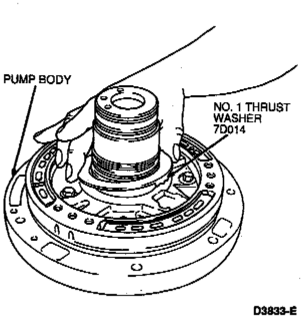 NOTE: Coat intermediate clutch piston outer seal and intermediate clutch piston inner seal and pump body sealing area with petroleum jelly.