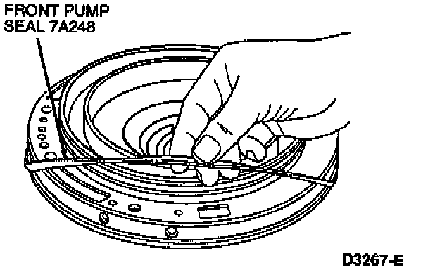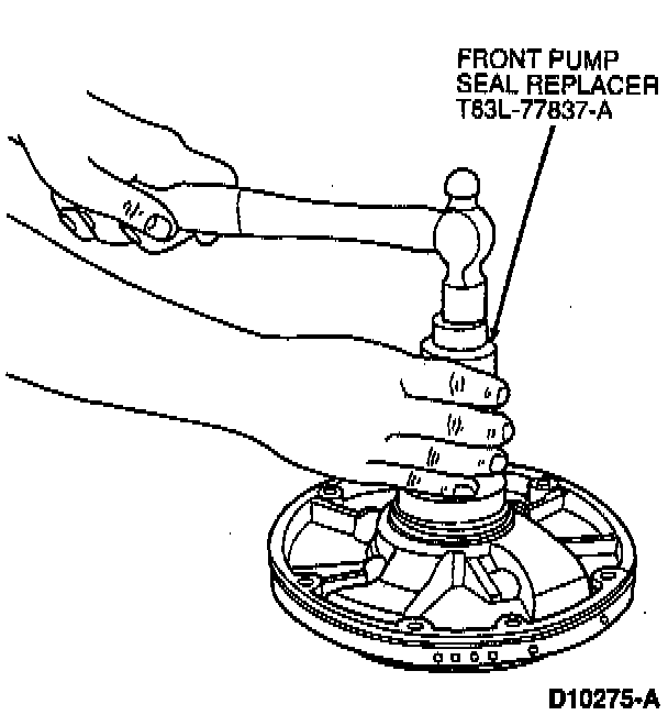 1. Install the front pump seal using Front Pump Seal Replacer T63L-77837-A.