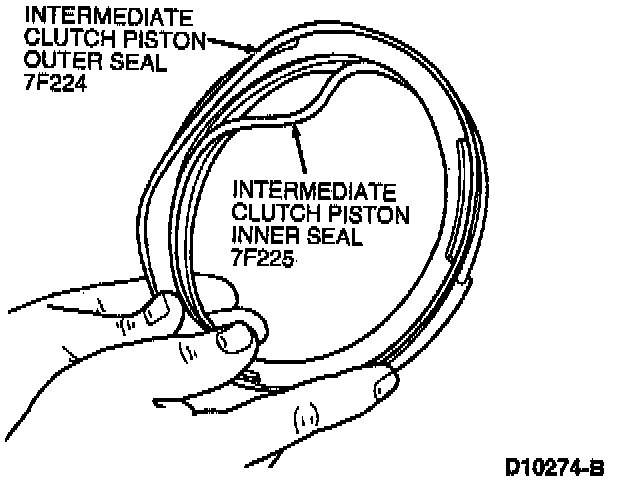 2. Install new intermediate clutch piston inner seal and intermediate clutch piston outer seal on intermediate clutch piston.