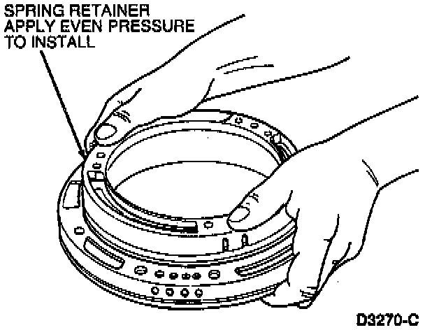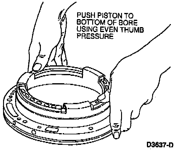 4. Install intermediate clutch piston in pump body and push intermediate clutch piston to the bottom of the bore by exerting even pressure.