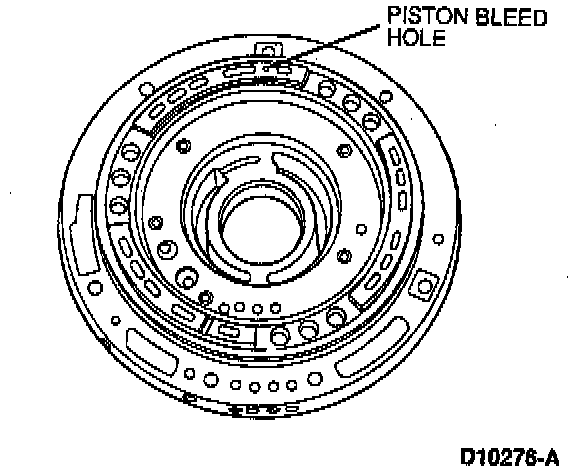 CAUTION: The piston bleed hole must be located at 12 o'clock position (toward top of transmission). If incorrectly installed, transmission may not operate properly.