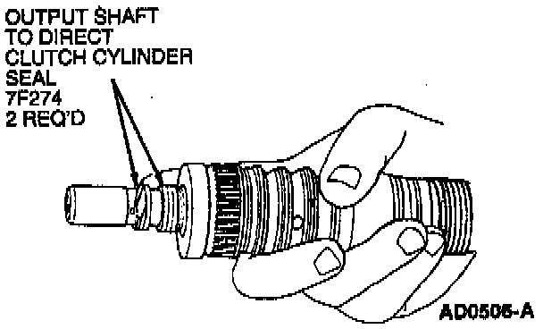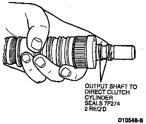 1. Install two output shaft to direct clutch cylinder seals. Make sure output shaft to direct clutch cylinder seals are properly lapped.
