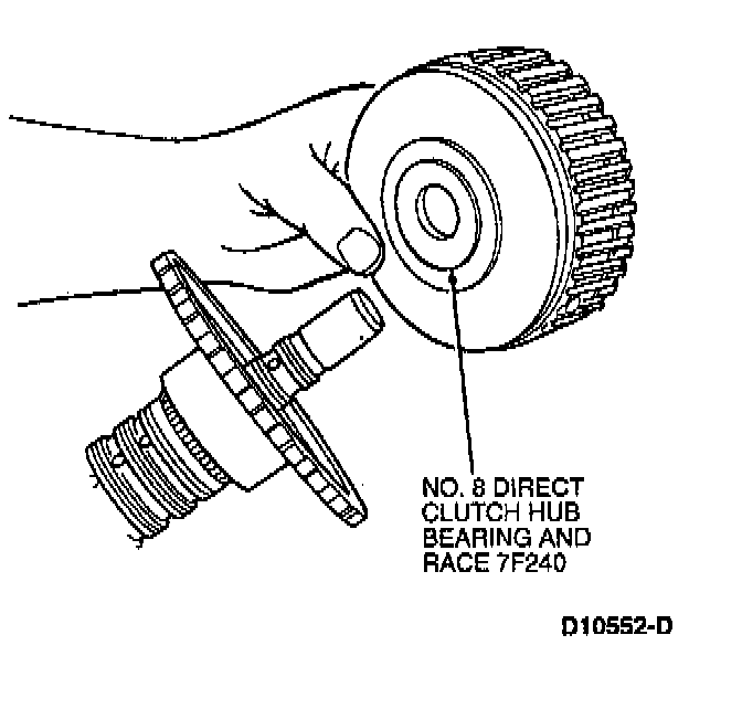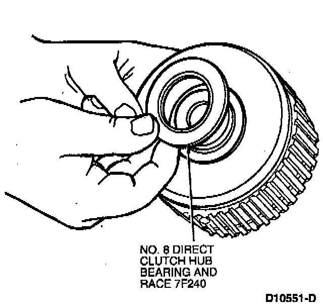 4. Install No. 8 direct clutch hub bearing and race on direct clutch cylinder.