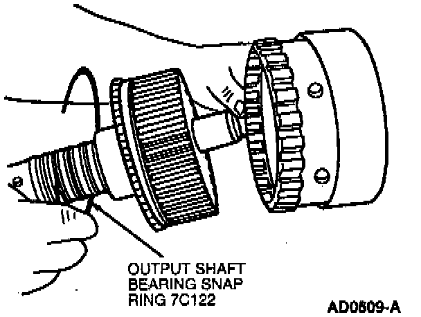 6. Install ring gear and snap ring on output shaft.