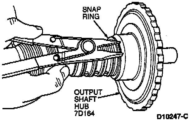 1. Remove snap ring retaining the output shaft hub (ID 164) to ring gear.