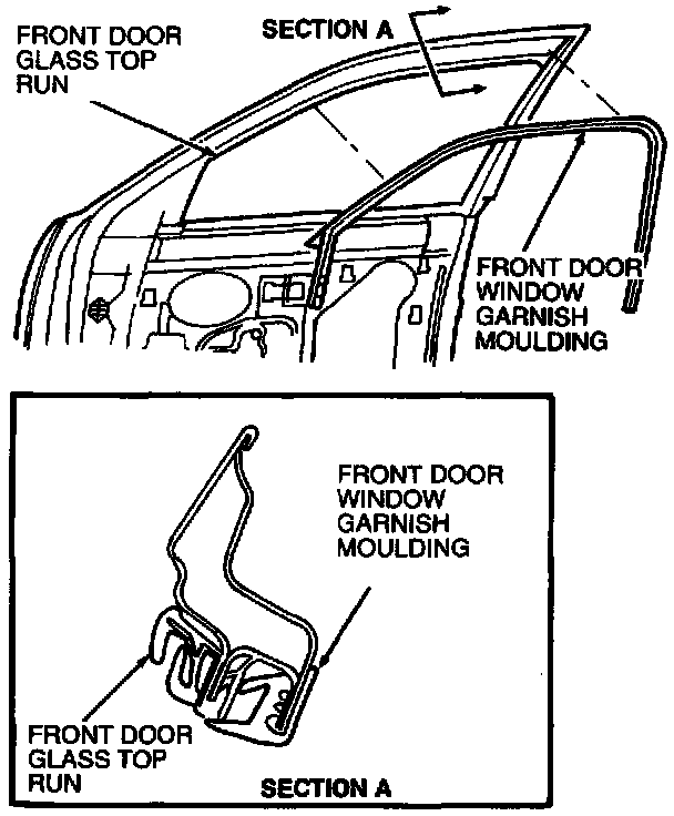 1. Install front door glass top run into door frame.