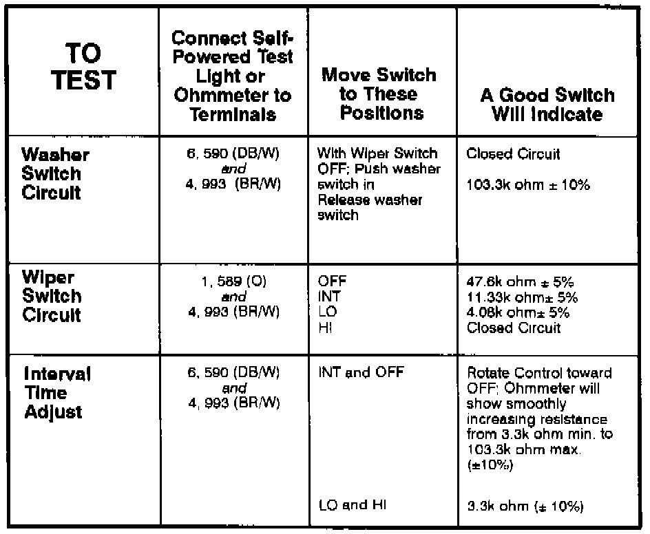 Multi-Function Switch - Component Testing Procedure: