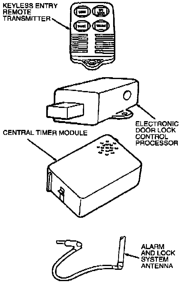 The keyless entry remote transmitter performs the following functions: