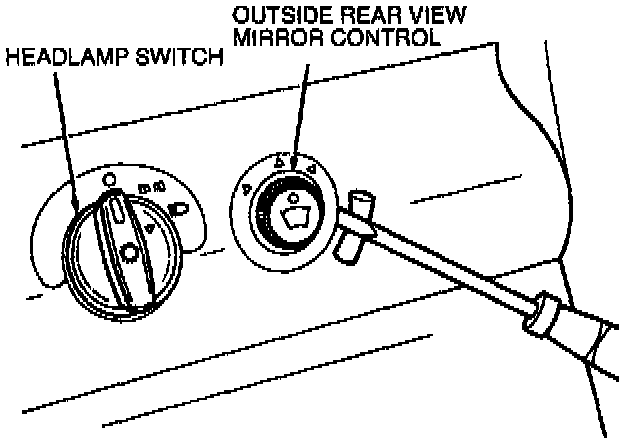 2. Carefully pry outside rear view mirror control from instrument panel finish panel.
