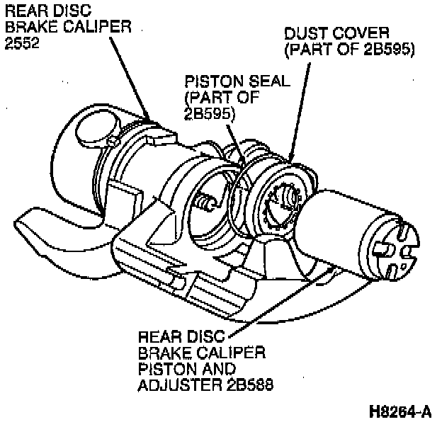 10. Install brake caliper piston and adjuster seal into groove in rear disc brake caliper housing.