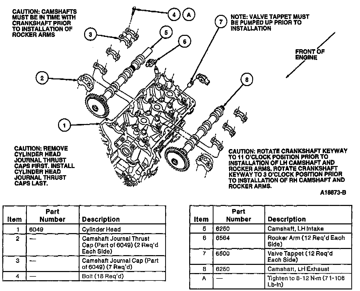 CAUTION: If valve tappets (6500) and roller rocker arms (6564) are to be reused, mark position of rocker arms and valve tappets to make sure that they are assembled in their original positions.