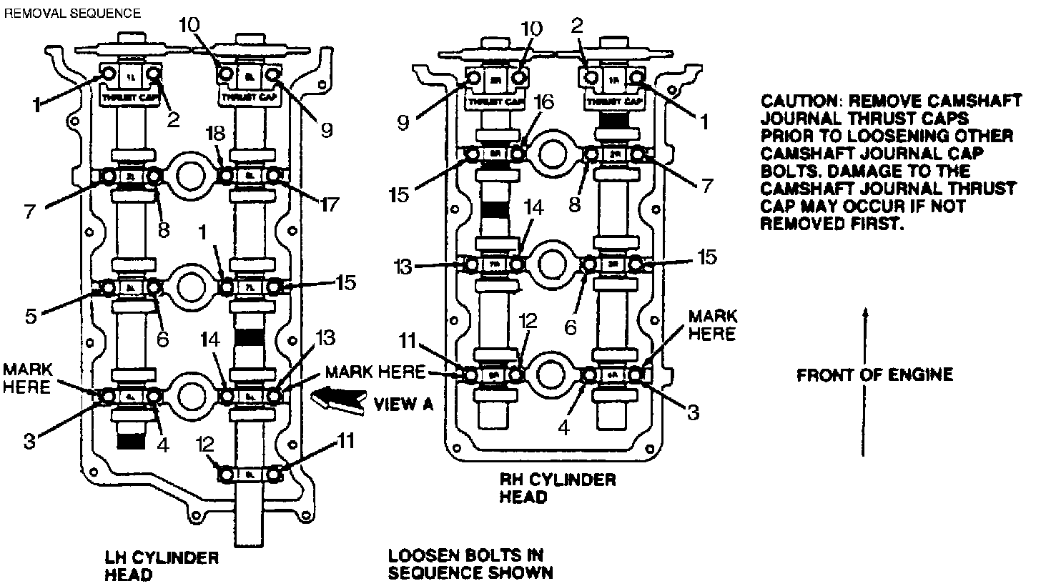 Camshaft journal cap bolt removal sequence: