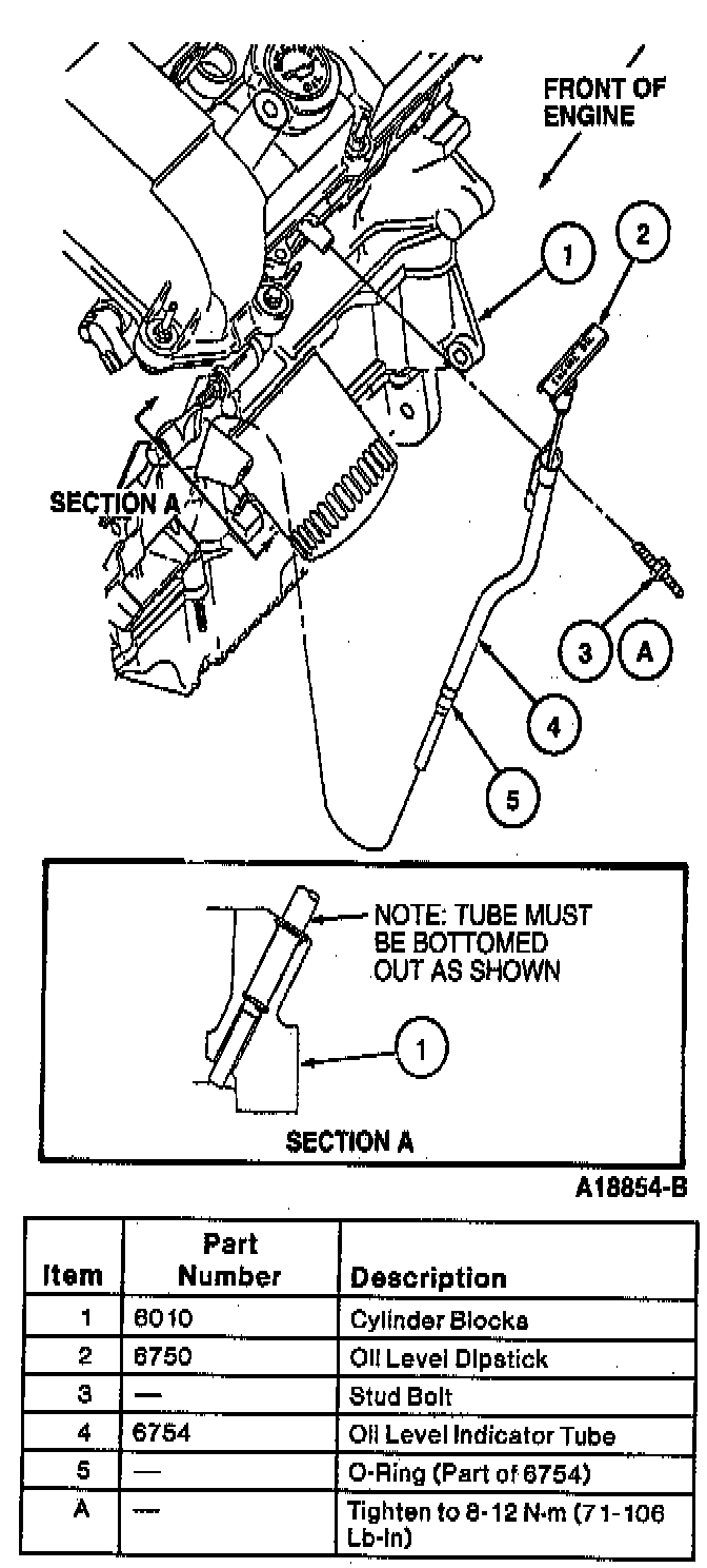 15. Remove oil level dipstick (6750), oil level indicator tube (6754) and O-ring from LH cylinder head and cylinder block.