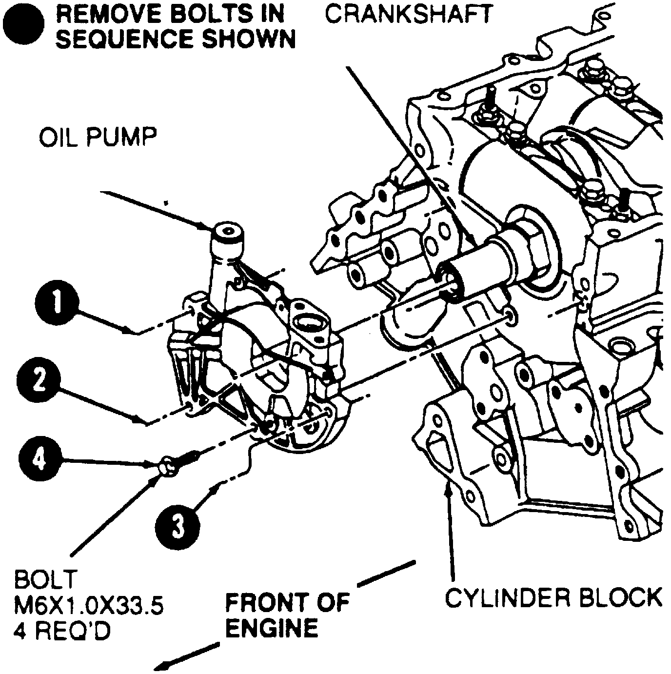 100. Remove oil pump retaining bolts in sequence shown. Remove oil pump from cylinder block. Inspect oil pump.
