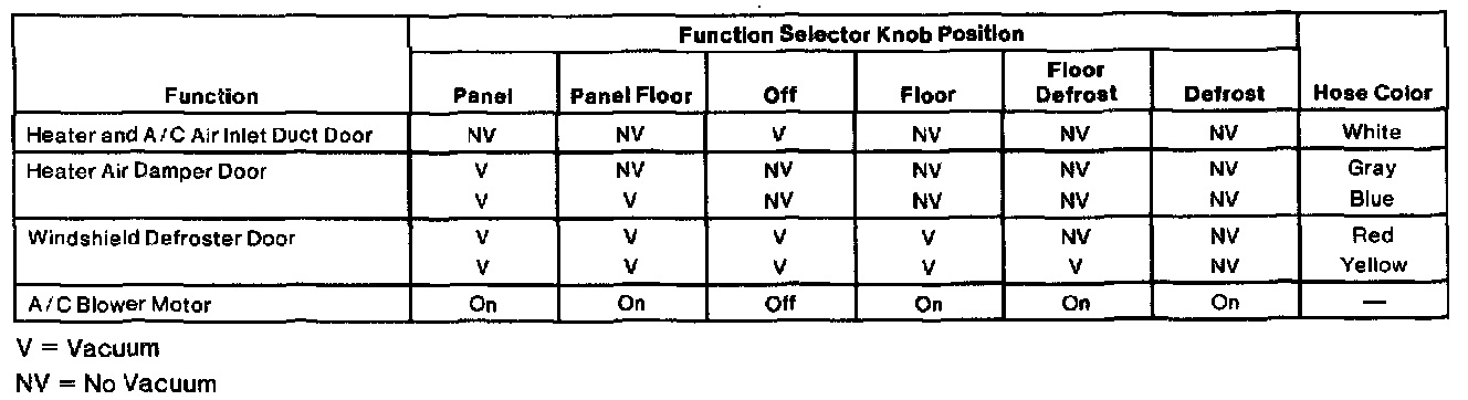 - the heater and A/C air inlet duct door and the heater air damper door are in the no vacuum position.