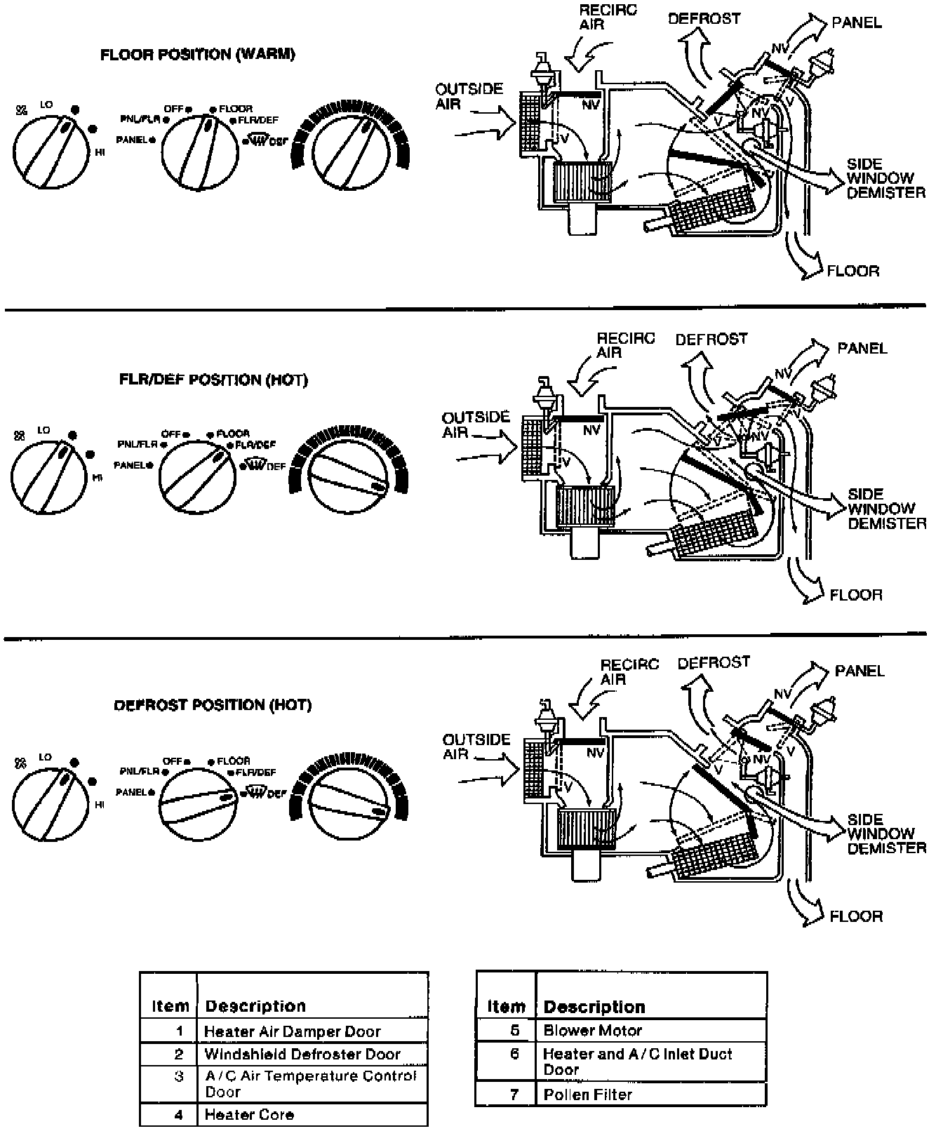 - the heater air damper door is in the partial vacuum position, allowing airflow to both the heater outlet floor duct and A/C register.