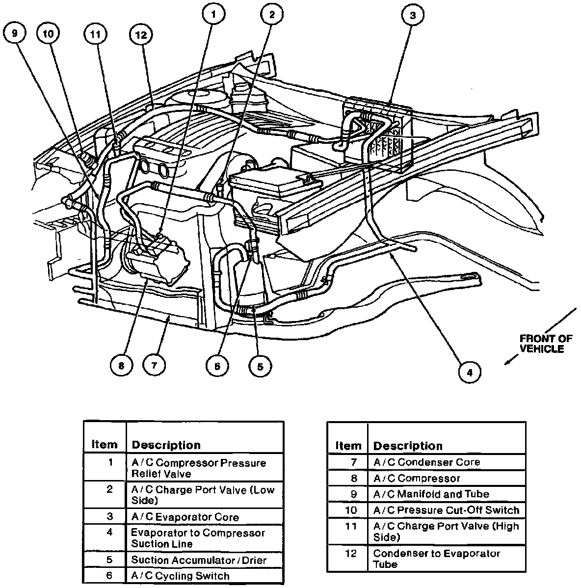 - The high-pressure and high-temperature A/C compressor discharge refrigerant vapor is released into the A/C condenser core assembly, through the A/C manifold and tube.