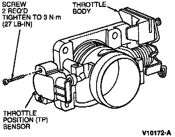 2. Secure TP sensor to throttle body with retaining screws. Tighten to 3 Nm (27 lb in).