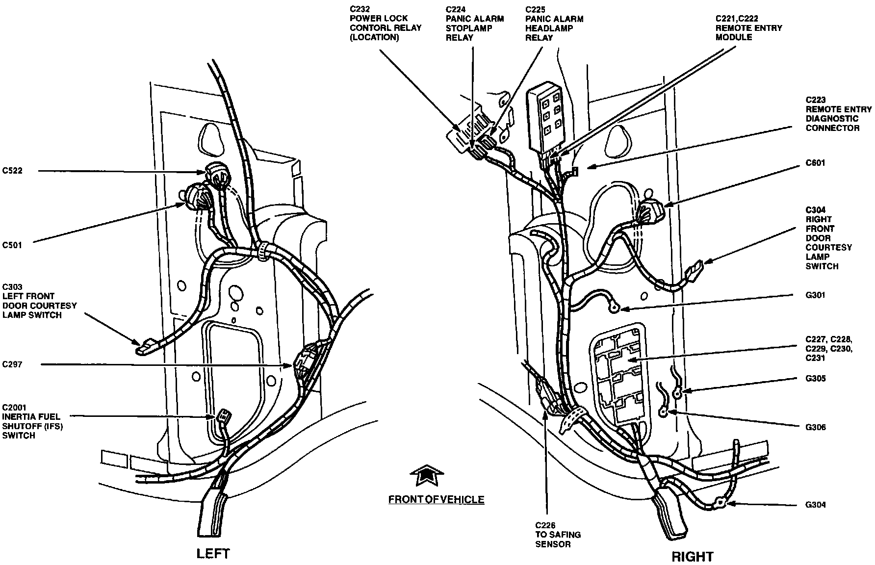 Power Door Lock Control Module: Locations