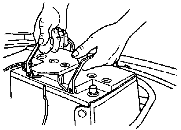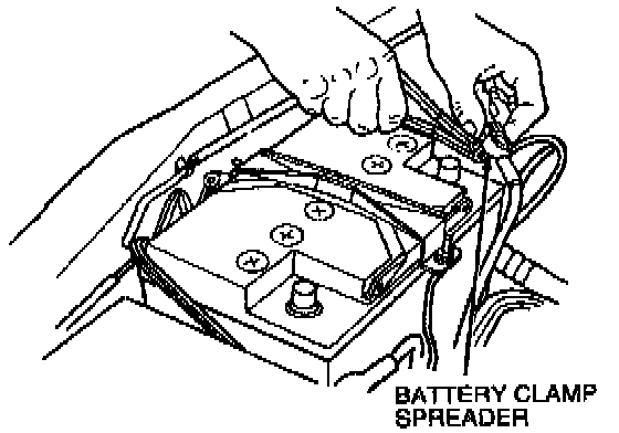 Battery pliers have jaws specifically designed for gripping cable clamp bolts securely. Care should be taken when removing or replacing the cable clamp bolts so that the battery terminal is not subjected to any excessive lateral or twisting forces. Such forces could cause major damage to the internal components of the battery and leakage at the terminals.