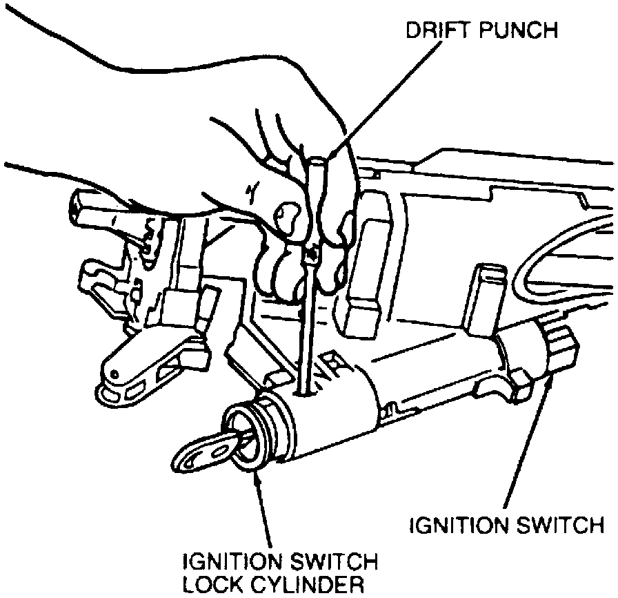 5. Place a 3.17 mm (0.125 inch) diameter wire pin or small drift punch in hole at top of lock cylinder housing.