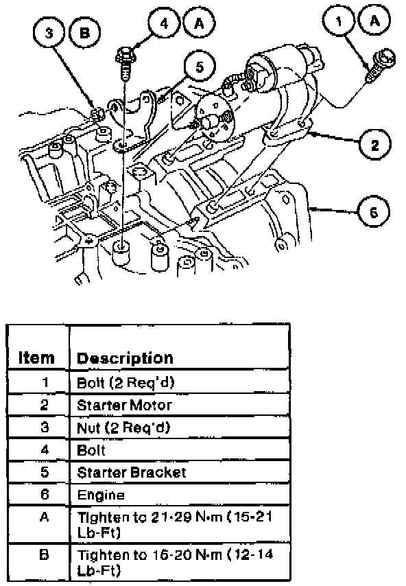3. Tighten all starter motor retaining bolts to 21-29 Nm (15-21 lb-ft).
