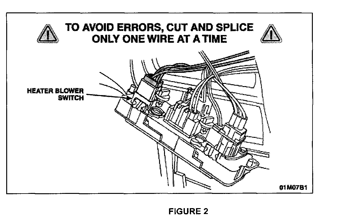 b. Select the first wire to be spliced from the switch wire harness and cut it as close as possible to the blower switch connector. See Figure 2.