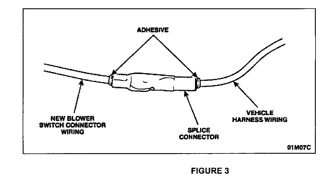 Cut and splice only one wire at a time. The wire colors on the new blower switch connector do not match the existing wiring harness colors.