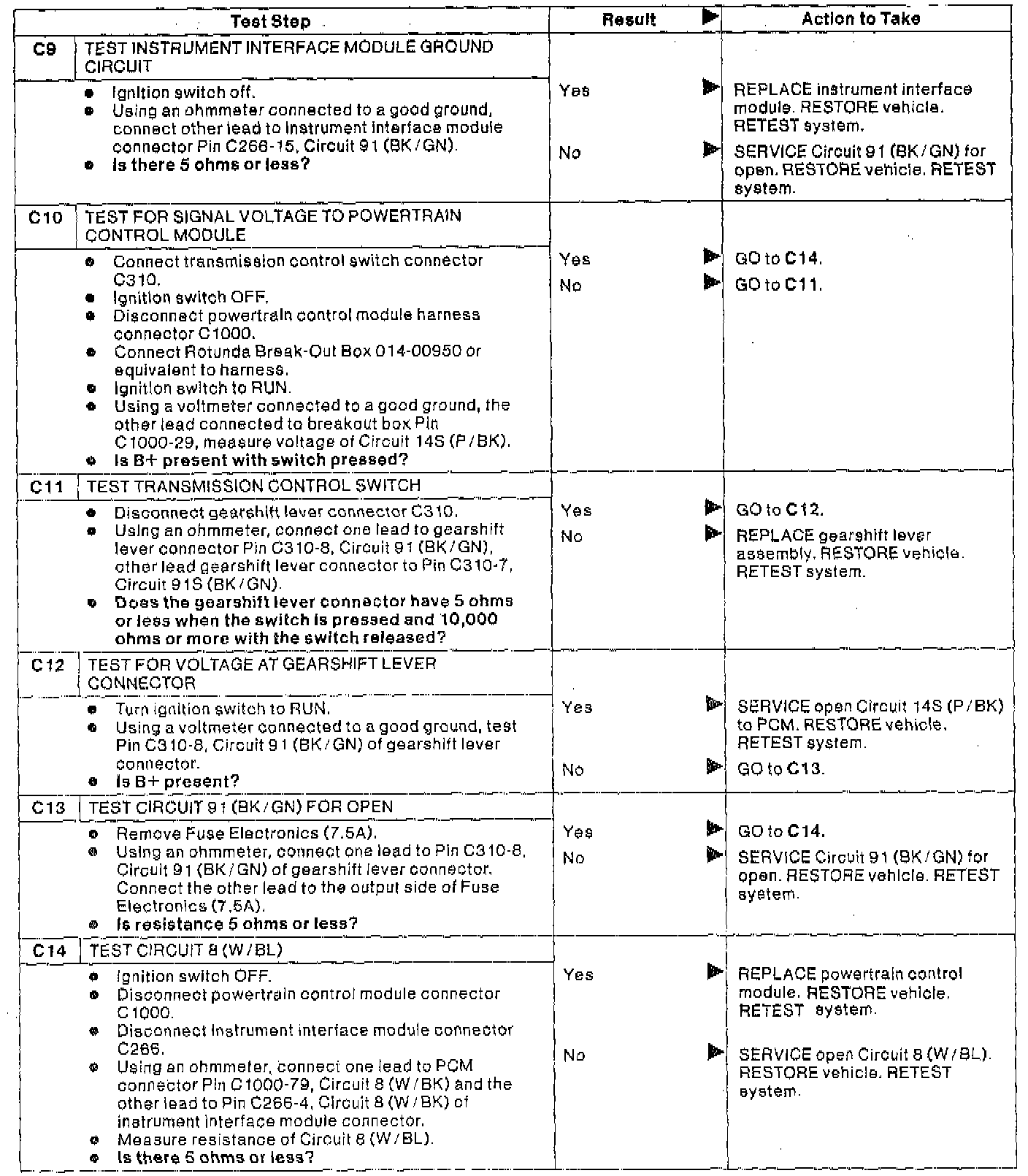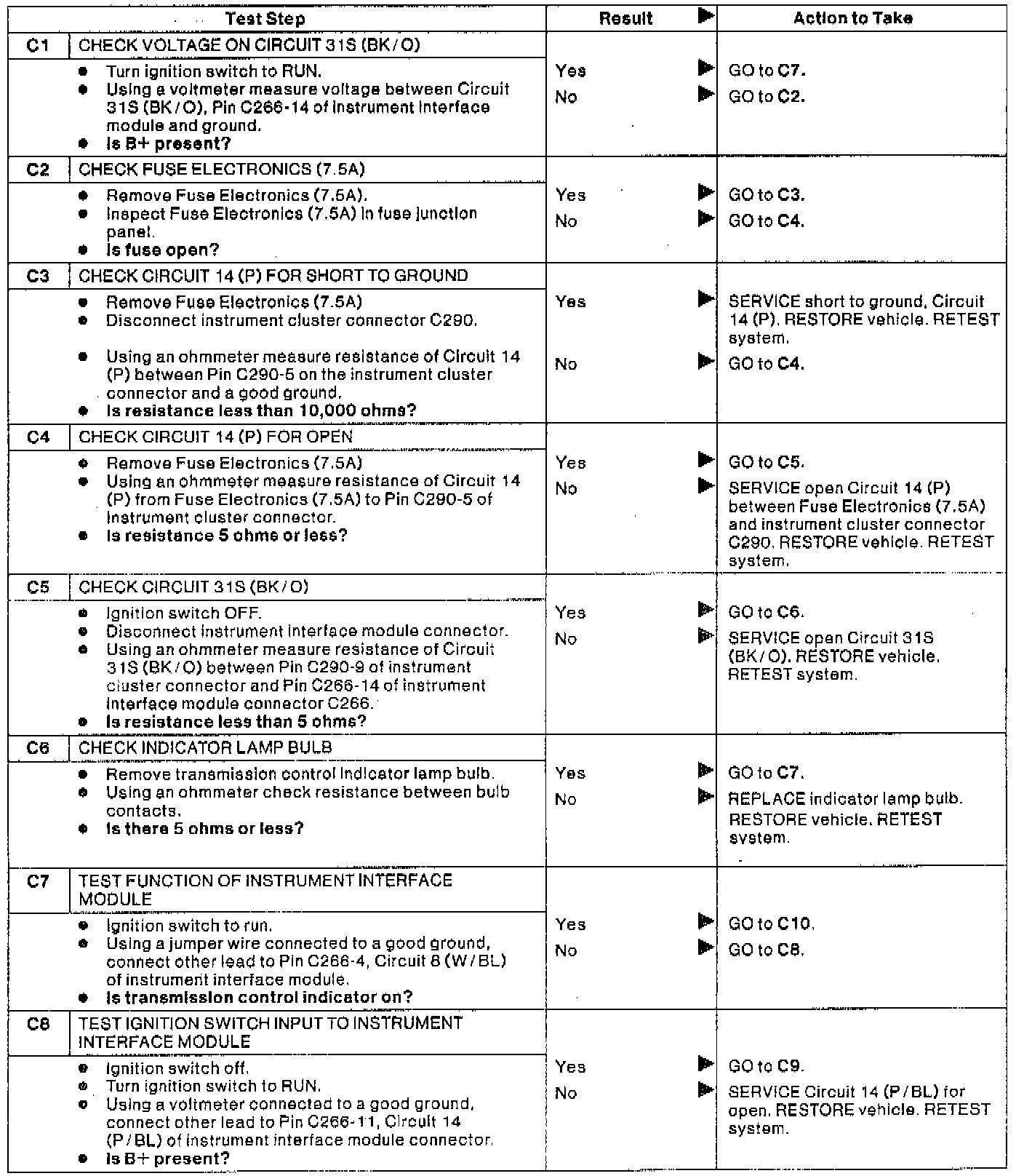 C: Trans. Control Sw. & Indicator Lamp Not Operating Properly