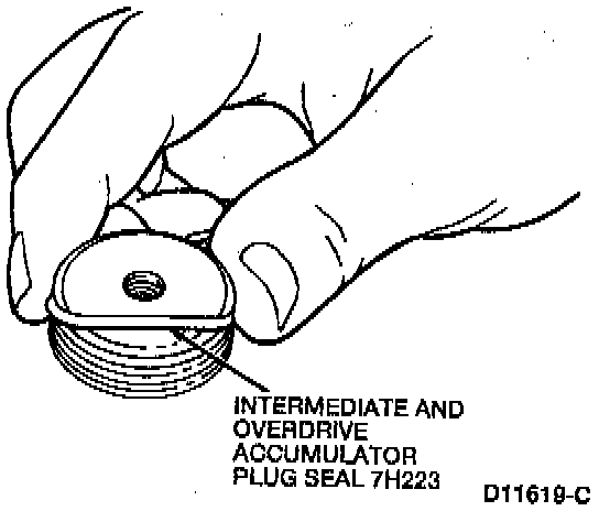 1. Install a new intermediate and overdrive accumulator plug seal on the Intermediate and Overdrive accumulator valve plug and coat with petroleum jelly.