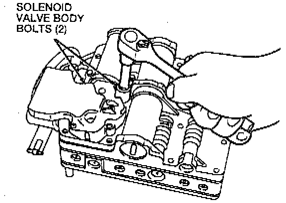 13. Install the two solenoid valve body bolts. Tighten the solenoid valve body bolts to 9-11 Nm (80-97 inch lbs.).