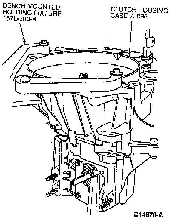 1. Mount transaxle in Bench Mounted Holding Fixture T57L-500-B.