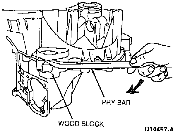 8. Use a block of wood and pry bar, apply force at the location shown to separate the transaxle housings.