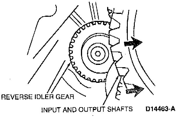 14. With the input and output shafts moved to the side, remove the reverse idler gear.