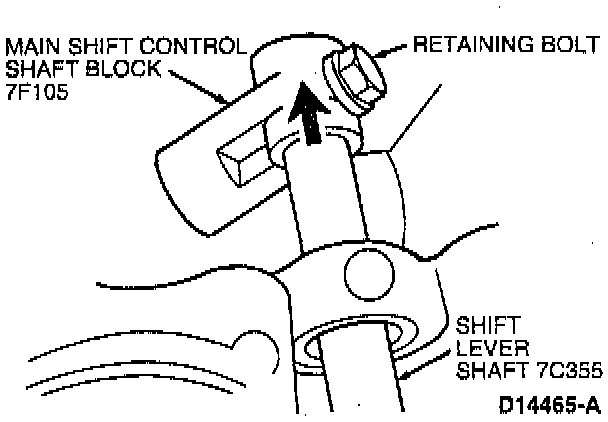 16. Remove bolt retaining the main shift control shaft block (IF 105) to the shift lever shaft. Remove shift lever shaft.