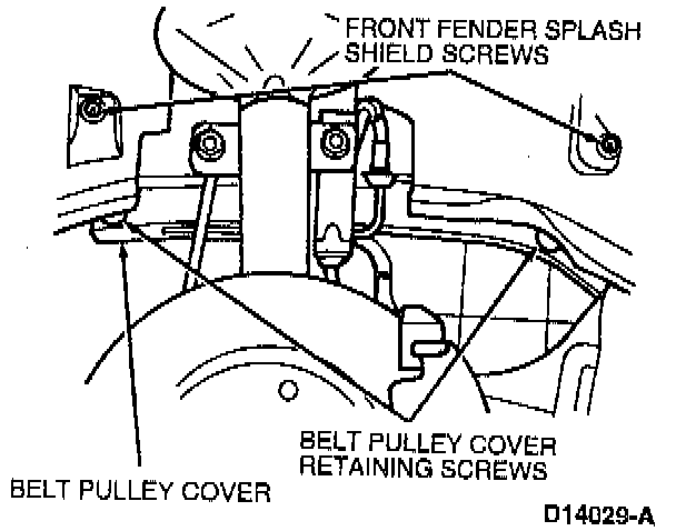 26. Install the belt pulley cover by sliding it up under the front fender splash shield.